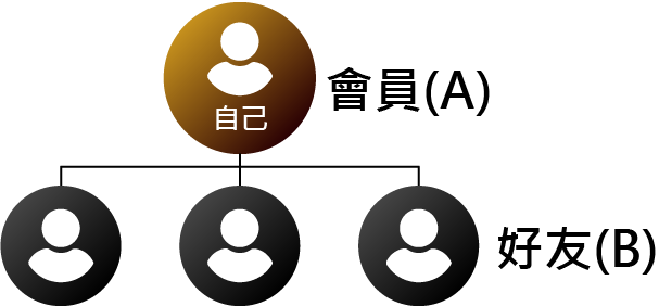 若是你的好友也加入這個計畫,好友將可以得到他第一層所有好友 "千分之一" 投注回饋金。